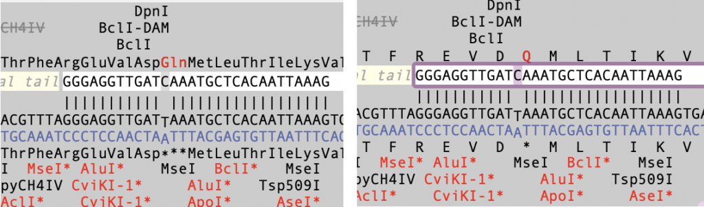 Many views in MacVector display amino acid translations above or below DNA sequences. Typically, these are from CDS features, but can also be the 3/6 frame translation of a sequence. You can display the amino acids as either the single-letter code, or as the three-letter code. You can toggle the setting using the MacVector | Preferences -> Text View pane.